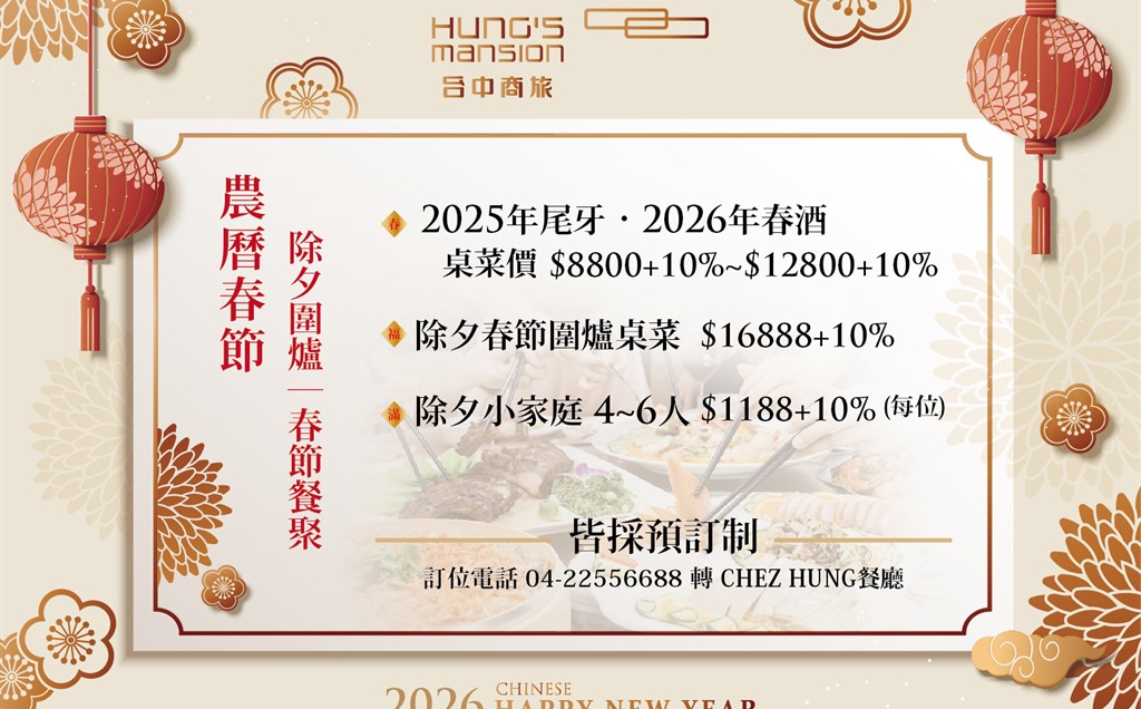 < 訂位電話 04-22556688 轉CHEZ HUNG餐廳 >